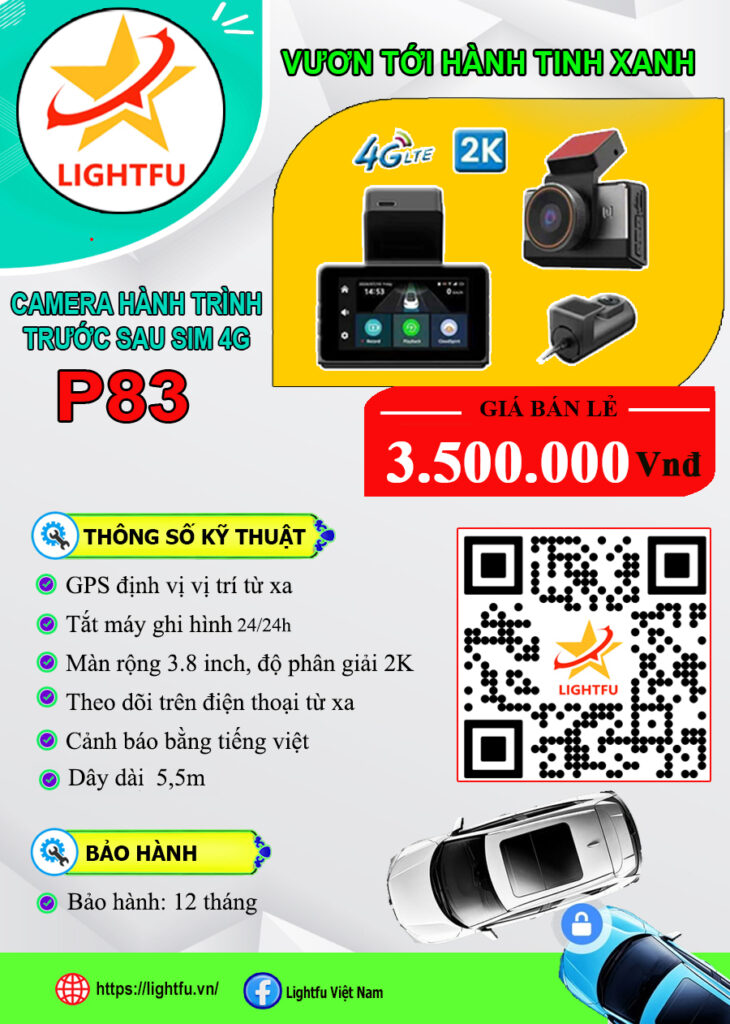 ► Camera hành trình trước sau P83 được tích hợp cảm biến hình ảnh ghi hình video siêu rõ nét với độ phân giải Super HD kênh trước và Full HD kênh sau chất lượng hình ảnh cực rõ trong điều kiện môi trường ánh sáng yếu hoặc ban đêm.